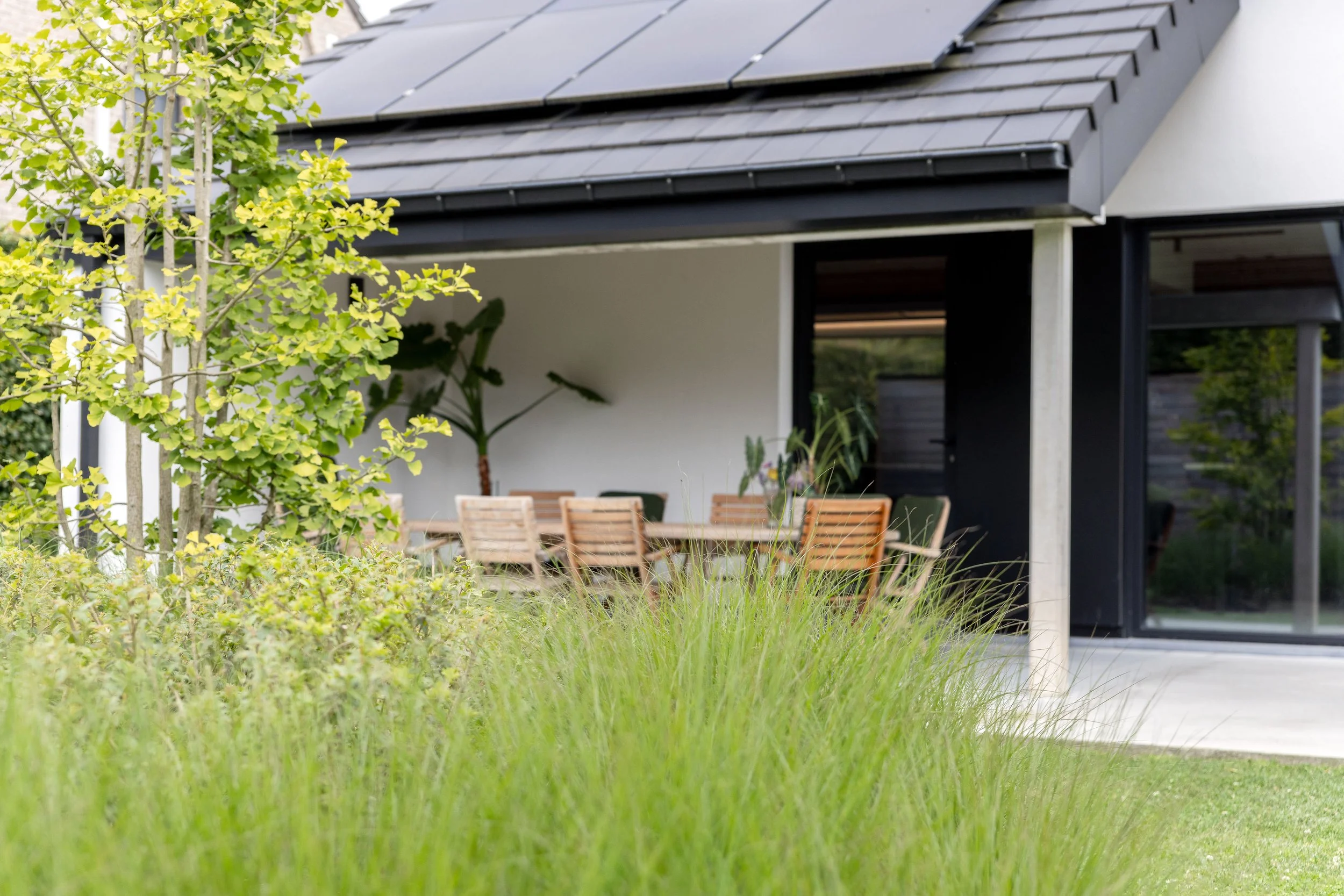 In Elewijt werd een moderne tuin ontworpen waar strakke materialen een organische vorm krijgen en zo perfect samenvloeien met de natuurlijke beplanting. Meerstammige bomen brengen structuur en hoogte, terwijl siergrassen en hagen zorgen voor een zachte, groene basis. Deze combinatie verzacht de strakke lijnen van de woning en creƫert een tijdloze buitenruimte waar architectuur en natuur hand in hand gaan.