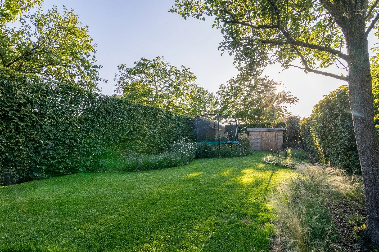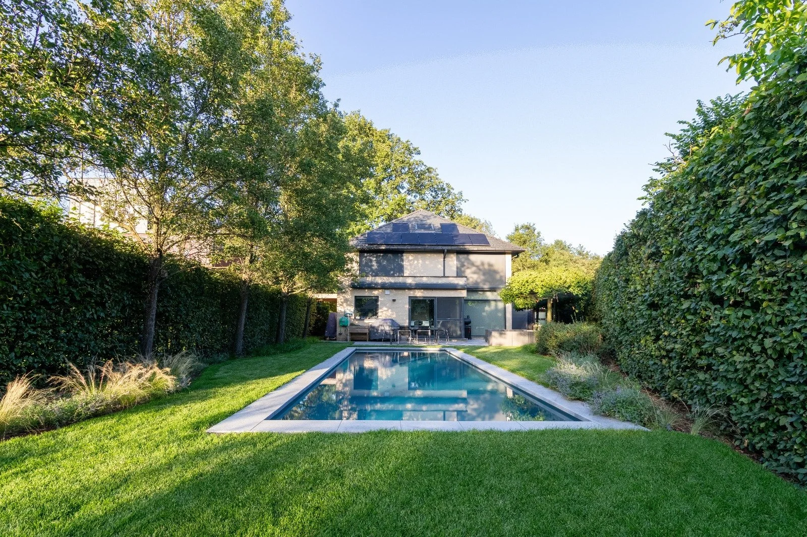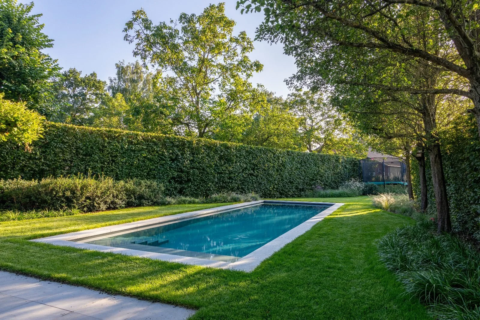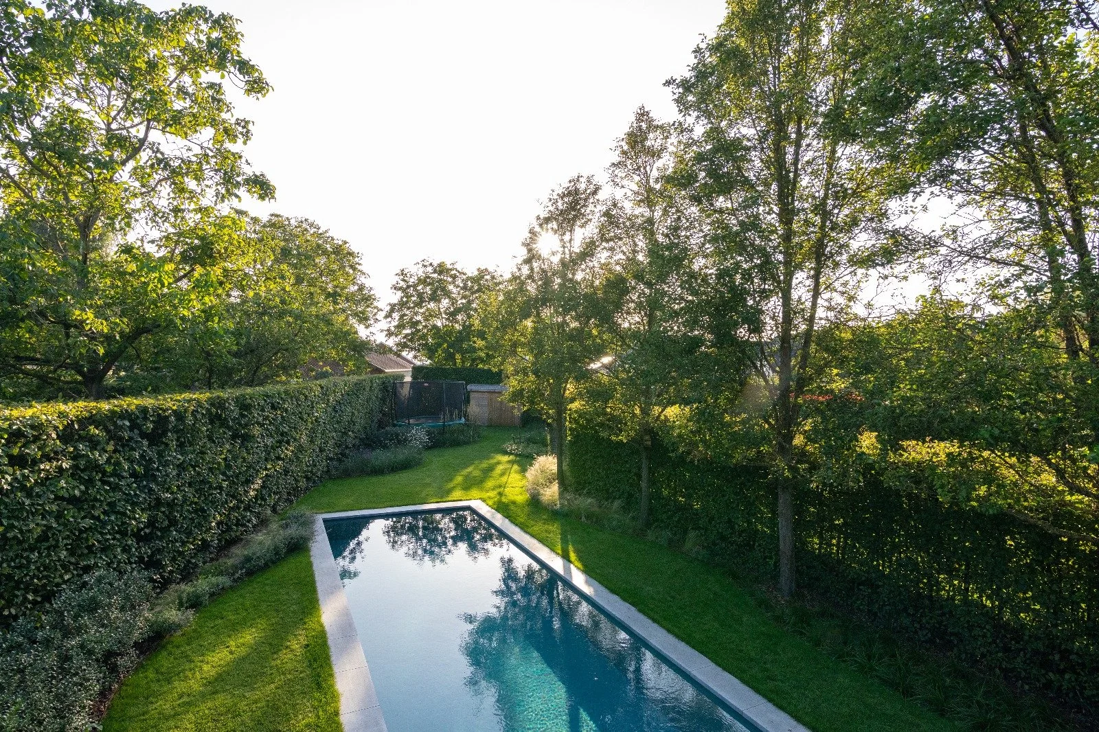 Dit project in Keerbergen toont de ideale mix van een moderne woning en een organisch tuinontwerp. Het strakke zwembad en het stijlvolle poolhouse sluiten naadloos aan bij de architectuur, terwijl siergrassen, hagen en bomen voor een natuurlijke balans zorgen. De rechte lijnen van de woning en verharding contrasteren met de vloeiende vormen van het groen, waardoor een tuin ontstaat die rust, luxe en dynamiek combineert. Het resultaat is een tijdloze buitenruimte waar architectuur en natuur elkaar versterken en uitnodigen tot genieten in elk seizoen.