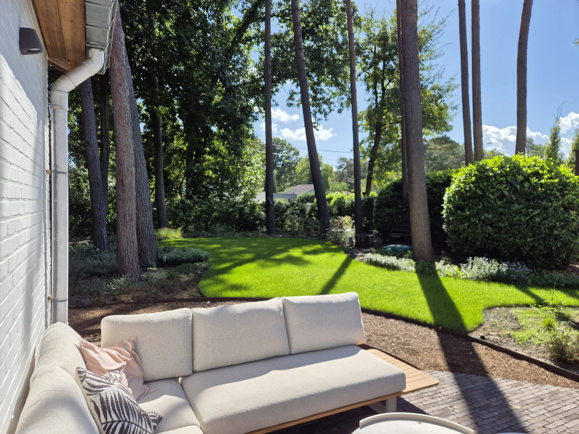 In Keerbergen werd deze bostuin omgevormd tot een groene oase waar hoge dennen, meerstammige bomen en organische beplanting de hoofdrol spelen. De tuin combineert open gazonpartijen met natuurlijke borders en sluit naadloos aan op het omliggende bos. Een stijlvolle zwemvijver vormt een rustpunt aan de rand van de tuin, terwijl het terras en de zithoek uitnodigen tot genieten in alle seizoenen.